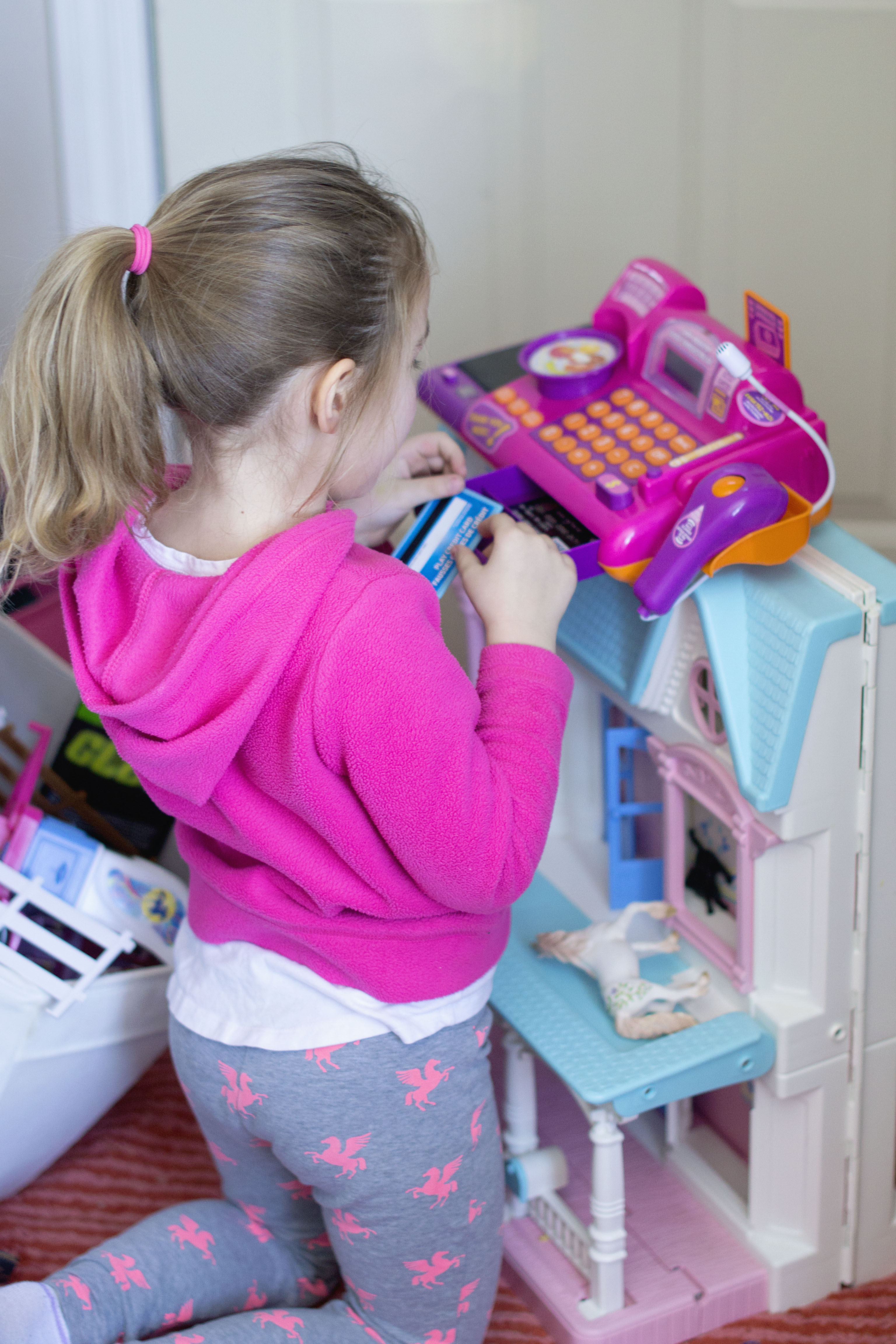 We got the girls a little cash register for Christmas because A) They like to play store and …B) They like to do math (my children?) Here’s Miss Eden swiping away… ahhhh that’s more my child. #guilty #inrecovery #orforcedtobe