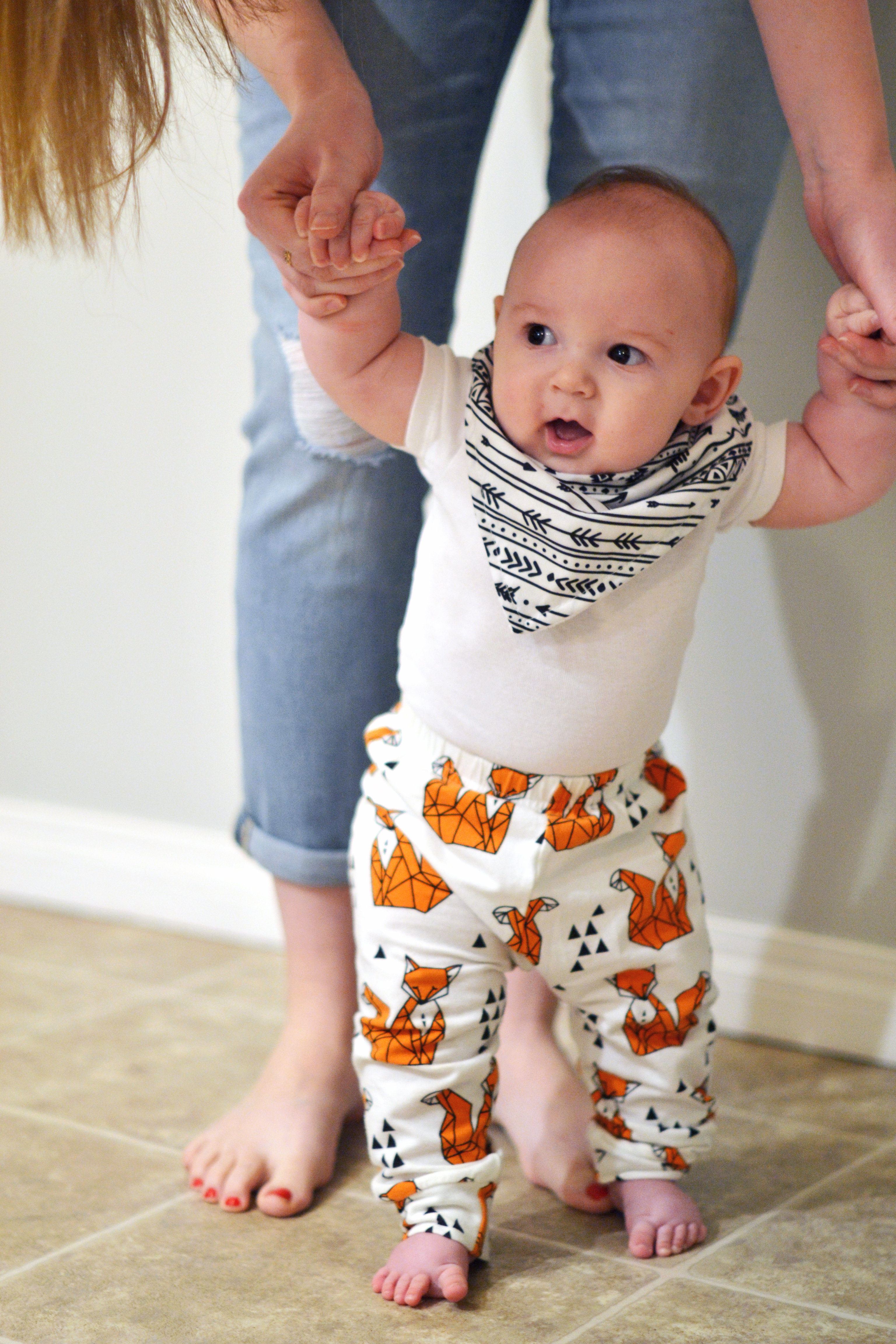 I LOVE these geometric fox leggings! They were one of my first purchases for Leo when he was still in utero.