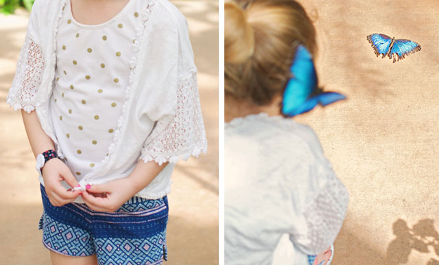 We went to a beautiful butterfly pavilion. There were MANY, MUCH butterflies flying around, resting on the walk-ways, or you know, resting on humans… Notice the butterfly on Eden’s left shoulder. Fay and Eden made a new life long friend on this trip. Kyla! She’s a few years older than the girls. They played so well together and had so much fun!